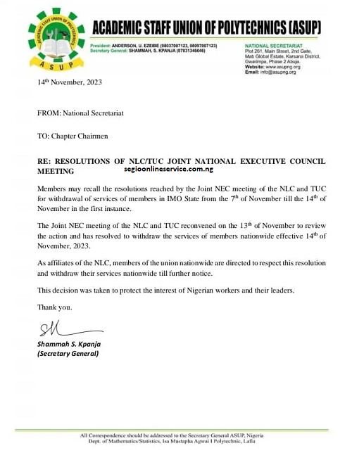 NLC STRIKE: ACADEMIC STAFF UNION OF POLYTECHNICS (ASUP) JOINS NLC NATIONWIDE STRIKE