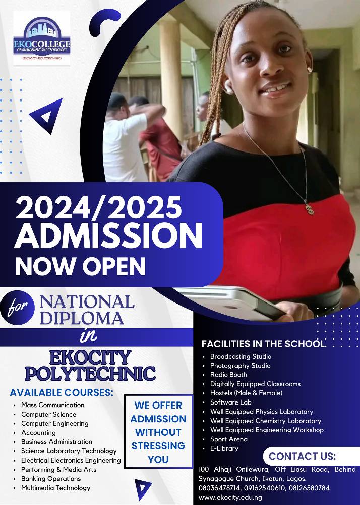Admissions are open at Ekocity Polytechnic, Lagos.