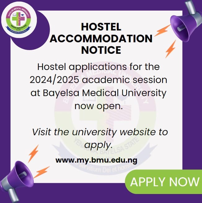 BAYELSA MEDICAL UNIVERSITY (BMU) ACTIVATES ONLINE APPLICATION PORTAL FOR STUDENTS HOSTEL ACCOMMODATION FOR THE 2024/2025 ACADEMIC SESSION