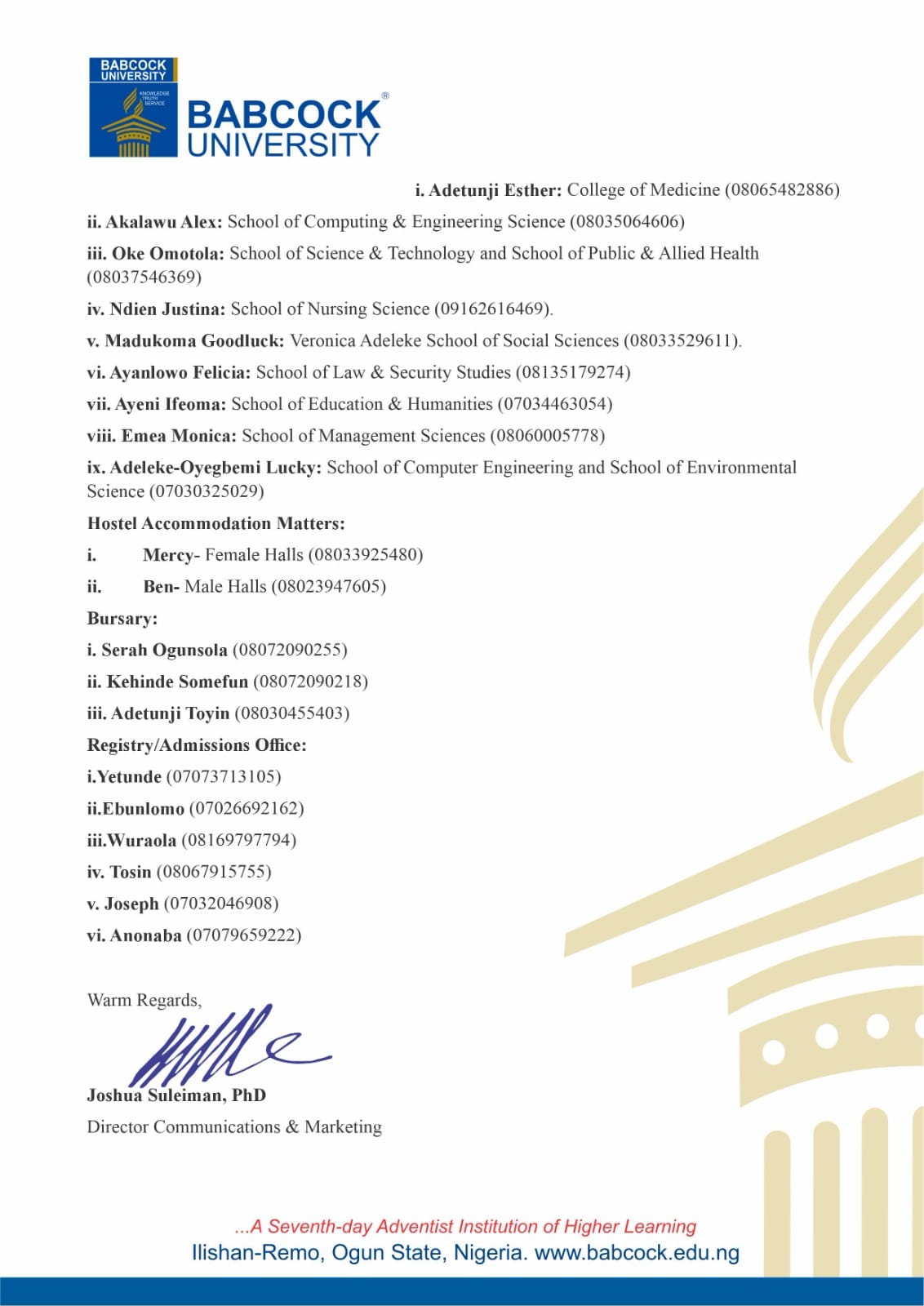 BABCOCK UNIVERSITY ANNOUNCES 2025 RESUMPTION SCHEDULE FOR ALL STUDENTS