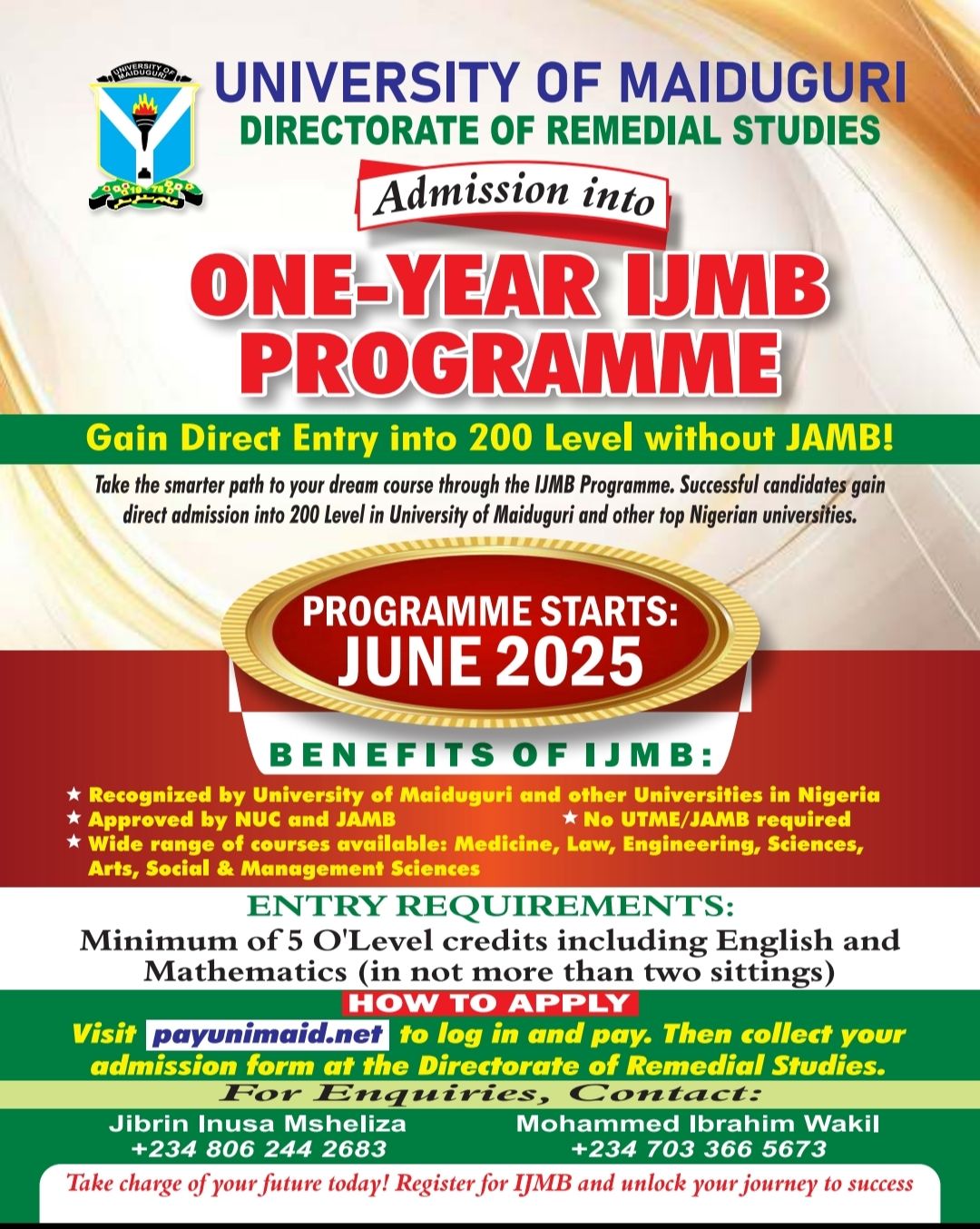 UNIVERSITY OF MAIDUGURI (UNIMAID) RELEASES POST-UTME/DIRECT ENTRY ADMISSION FORM FOR THE 2025/2026 ACADEMIC SESSION The University of Maiduguri has announced that its 2025/2026 Post-Admission Screening Exercise for Unified Tertiary Matriculation Examination (UTME) and Direct Entry […]