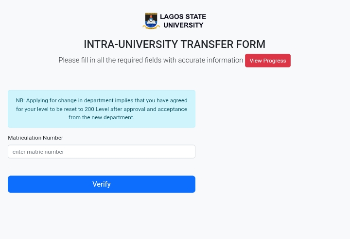 The management of Lagos State University (LASU), Ojo, has officially activated its Intra-University Transfer Portal for students who wish to change their course or department within the institution for the 2025/2026 academic session.