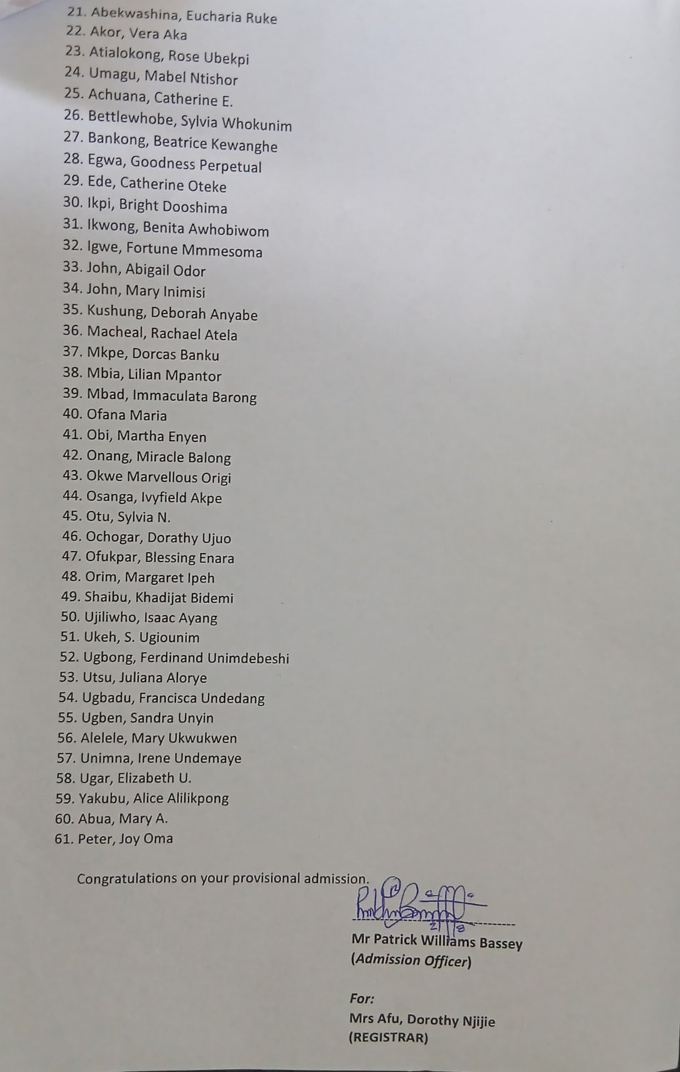 The management of the College of Nursing Sciences, Obudu has announced the official release of the Admission List for the Community Midwifery Programme.