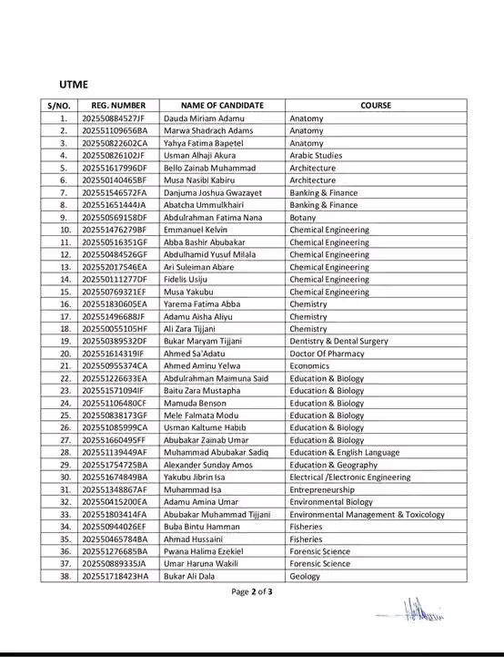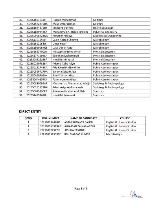 NOTE: THIS IS THE FINAL ADMISSION LIST FOR THE 2025/2026 ACADEMIC SESSION
