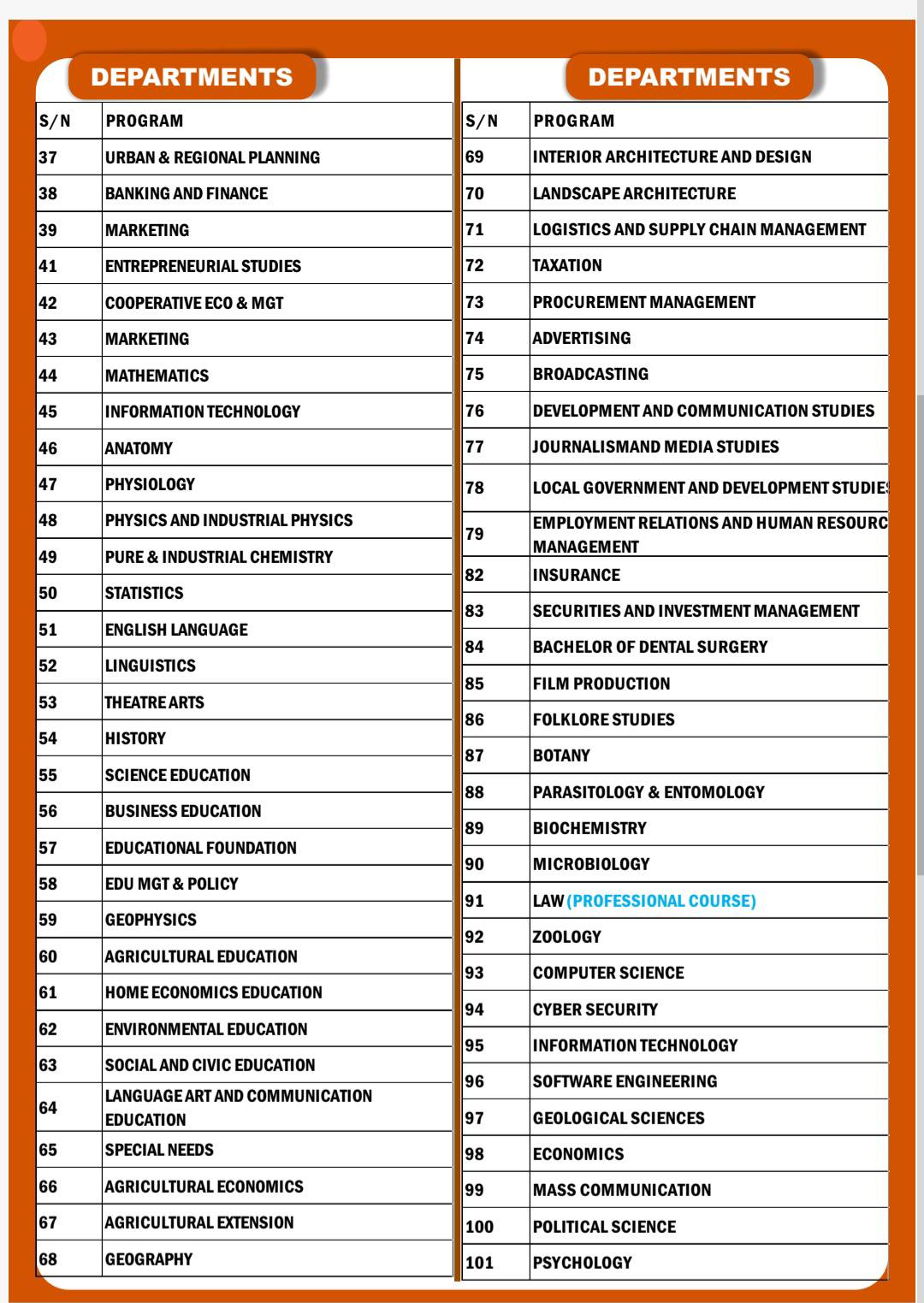The management stated that the advertisement covers specific programmes for candidates willing to study them upon admission, adding that intra-university transfers will only be allowed after two years of study.