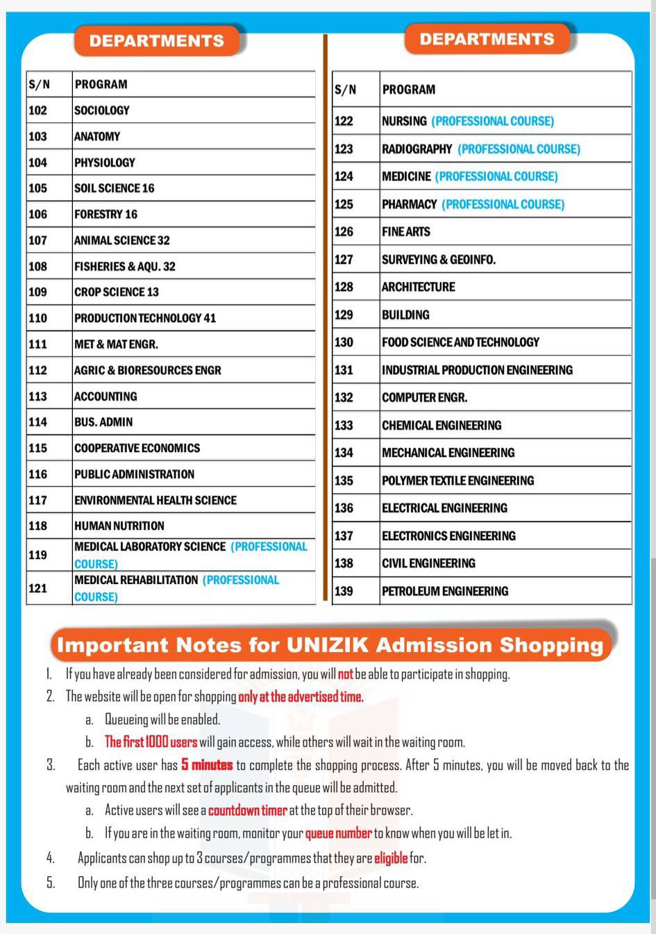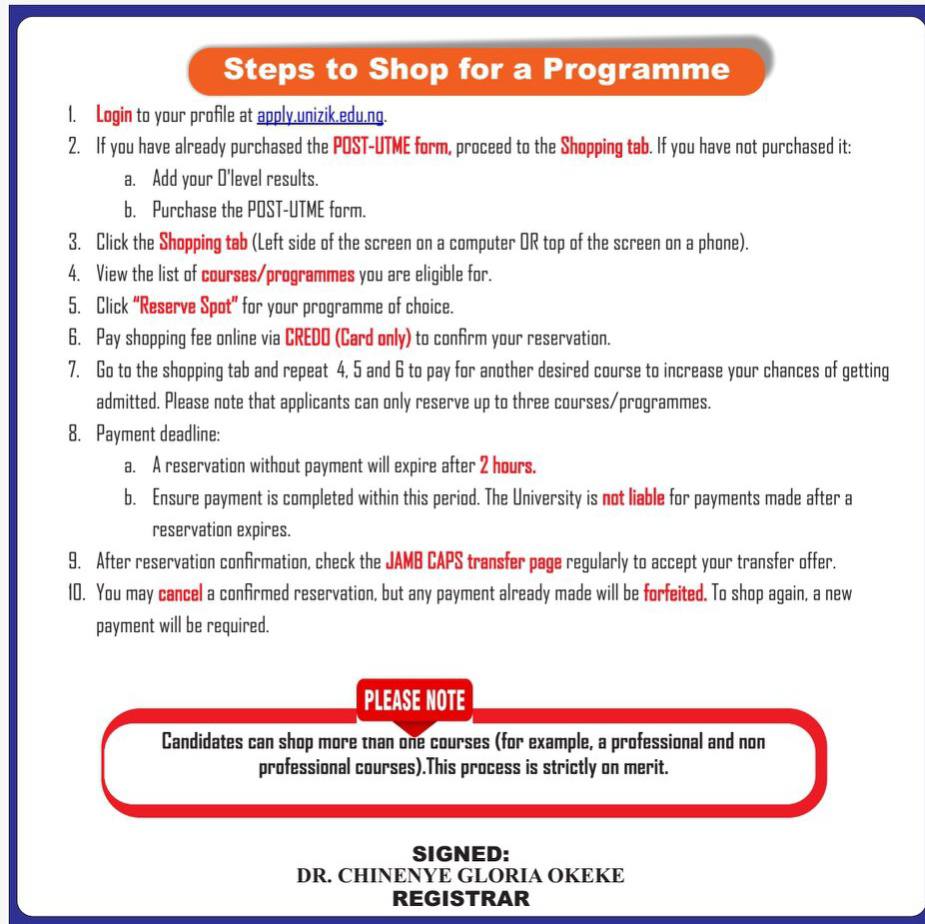 The university clarified that the supplementary admission window is strictly for candidates who have not been admitted into any department in UNIZIK.